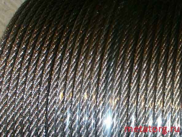 Трос нержавеющий авиационный изготавливается методом двойной свивки с линейным касанием проволок. В его основе — шесть прядей, навитых на прочный металлический сердечник. Для производства проволоки используются высоколегированные коррозионностойкие стали марок 12Х18Н9Т и 12Х18Н10Т.