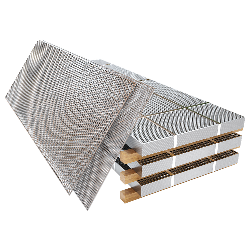 Лист нержавеющий, подвергшийся перфорации, устойчив к воздействию влаги и химических веществ, легкий и универсален в применении, имеет эстетическую привлекательность.