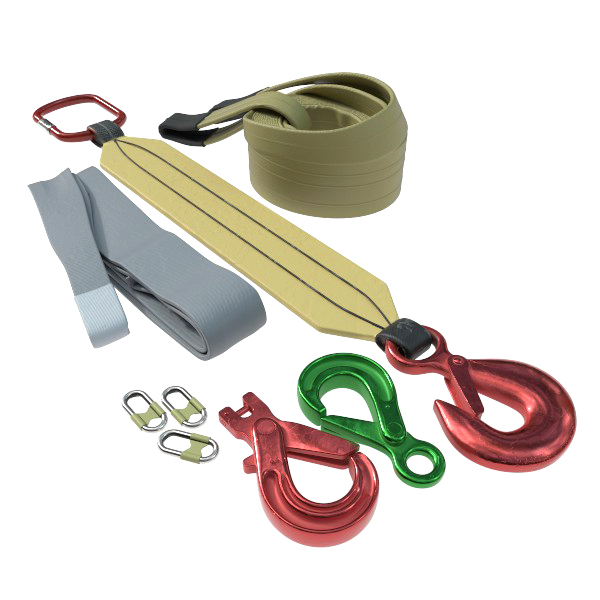 В комплектацию строп из текстильной ленты могут входить защитные накладки, а также петли длиной 100, 150 и 2000 мм, крюки, зажимы и другие виды грузозахватных приспособлений. Концевые элементы и соединительные звенья стропов окрашиваются в предупредительные цвета в соответствии с ГОСТ 12.4.026. В зависимости от грузоподъемности ленточные текстильные стропы имеют разную цветную маркировку.