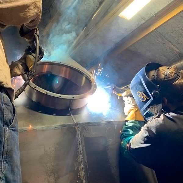 - Сборка и соединение элементов — конструктивные части соединяются методом автоматической сварки, ручной электродуговой сварки, контактной сварки или механического крепления (с использованием болтов, гаек, шайб и заклёпок — в случае разборных конструкций).
